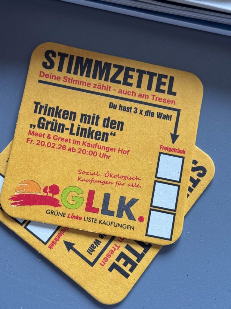Wer hat noch keine Einladung? Dann wird es jetzt aber Zeit. Während es am Aschermittwoch für die Närrinnen und Narren heißt „Alles vorbei“, geht es für die GLLK am Freitag, 20.Februar ab 20:00 Uhr erst richtig los. Trinken mit den Grün-Linken.